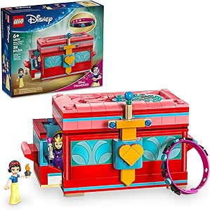 Delight kids and Disney fans with the perfect birthday gift for 6 year olds; the LEGO ǀ Disney Snow White’s Jewelry Box (43276) buildable toy playset. This Disney toy features a box with an opening lid and handles on each side that pull open to reveal hidden rooms, a sword and chain lock, Snow White and the Evil Queen LEGO ǀ Disney mini doll figures and a colorful bracelet with plenty of decorating elements to design, wear or share. This Disney construction set helps boost children’s confidence and inspire creativity as they play. Includes secret rooms and the ability to decorate the Disney bracelet any way they like. The model also works with other building sets (sold separately) in the LEGO ǀ Disney range. Kids and grown up fans alike will appreciate all the details in the building set and can enjoy creating one of the latest toys together as a fun Disney gift. Kids also get an easy and intuitive building experience with the LEGO Builder app. They can zoom in and rotate models in 3D, save sets and track their progress. Contains 358 pieces.